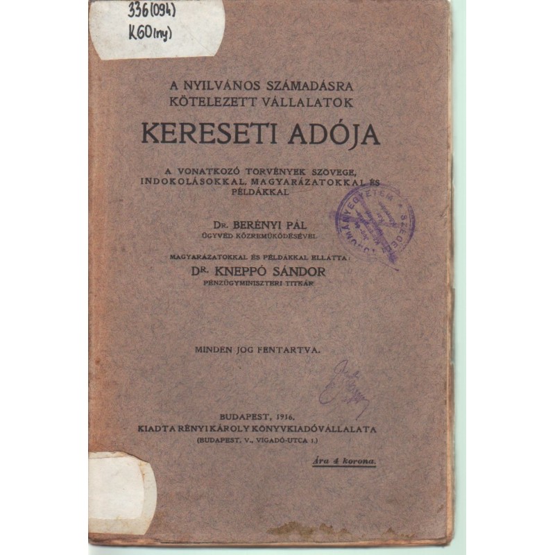 | Kiadó(k) | Rényi Károly Könyvkiadóvállalata |