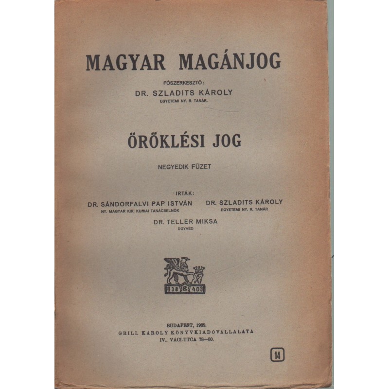 | Író(k) | Dr. Szladits Károly, Dr. Sándorfalvi Pap István, Dr. Teller Miksa |