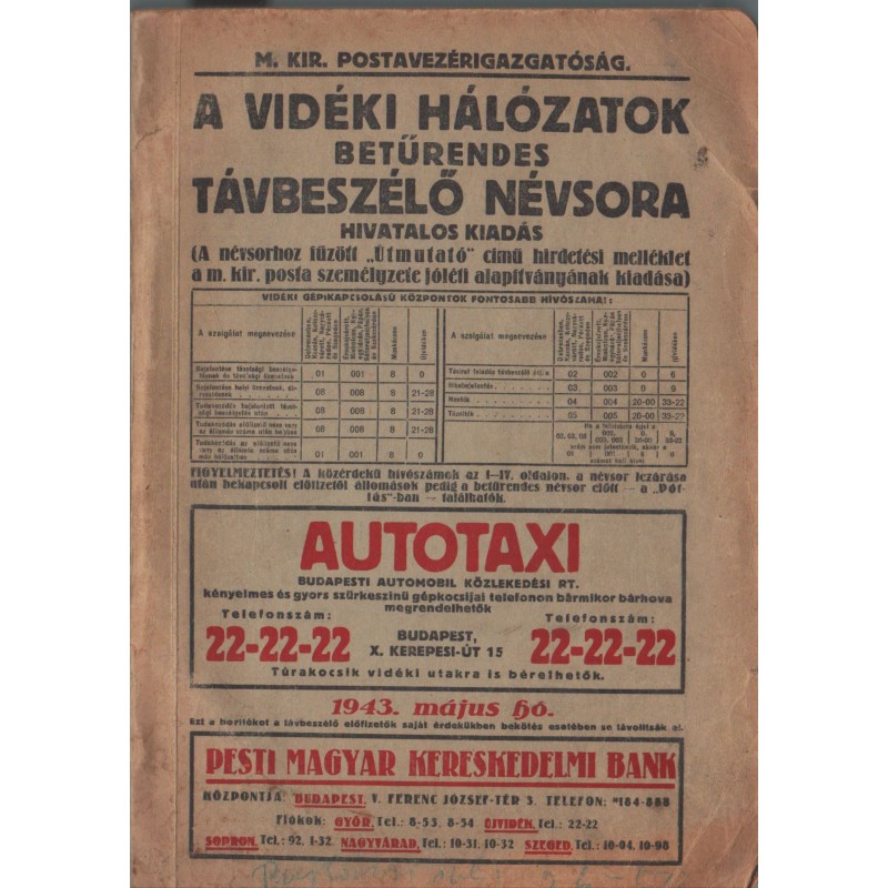 | Kiadó(k) | Magyar Királyi Postavezérigazgatóság |