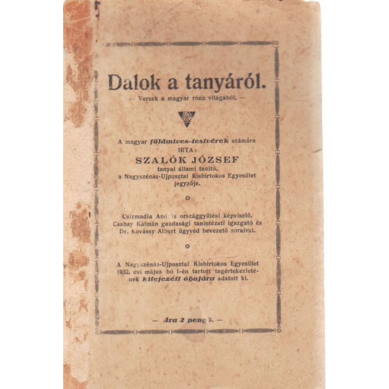 Ritka 1932-es orosházi kiadvány! Gerince restaurált, kötése foltos.