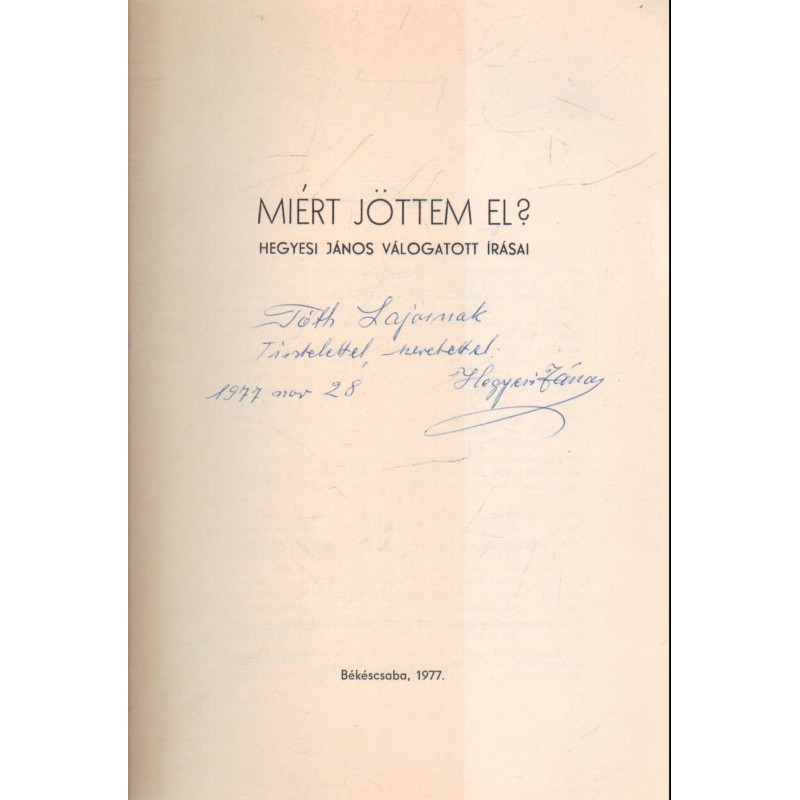 A szerző dedikálásával. Borítója kissé foltos és sérült.