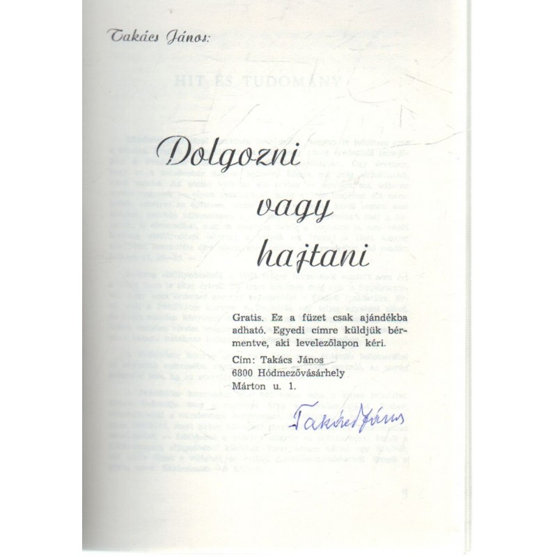 Dolgozni vagy hajtani (Aláírt!)