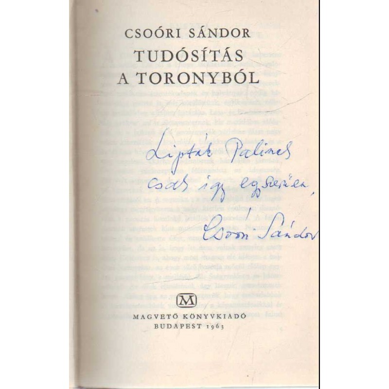 Tudósítás a toronyból(dedikált)