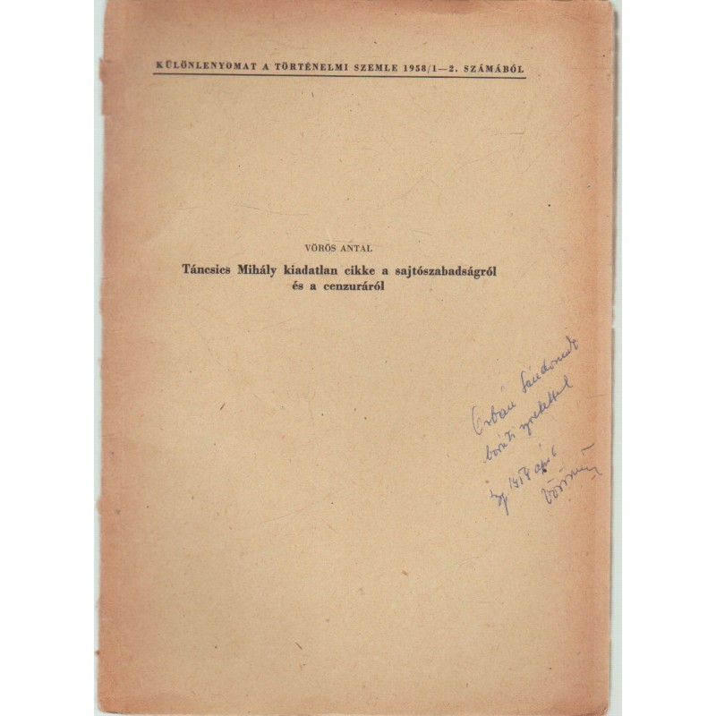 Táncsics Mihály kiadatlan cikke a sajtószabadságról és a cenzúráról (dedikált)