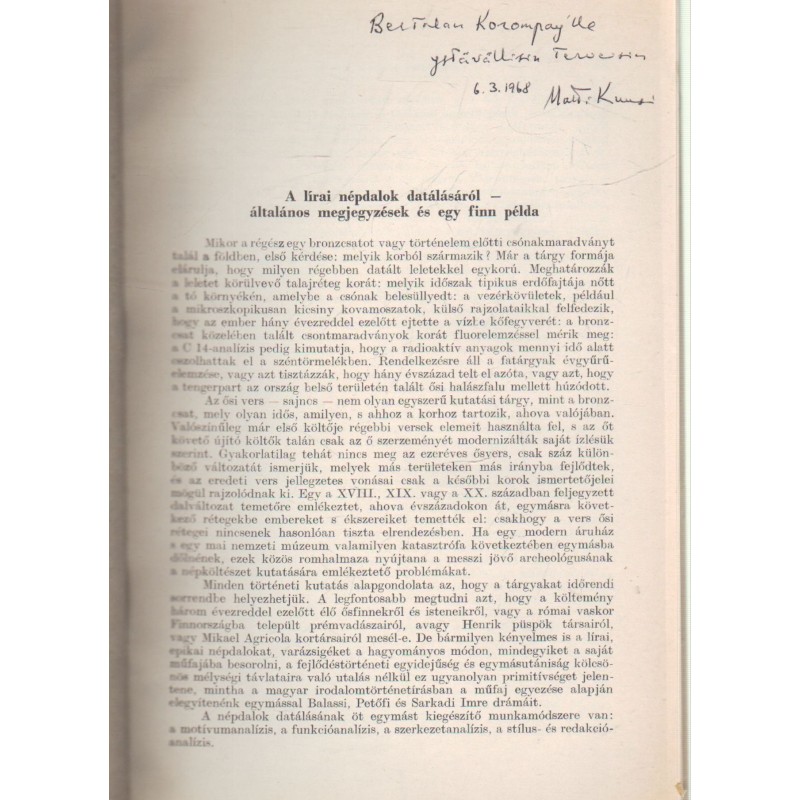 A lírai népdalok datálásáról (dedikált)