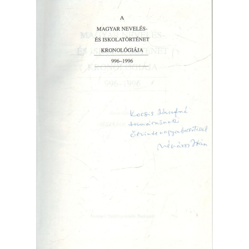A magyar nevelés -és iskolatörténet kronológiája (dedikált)