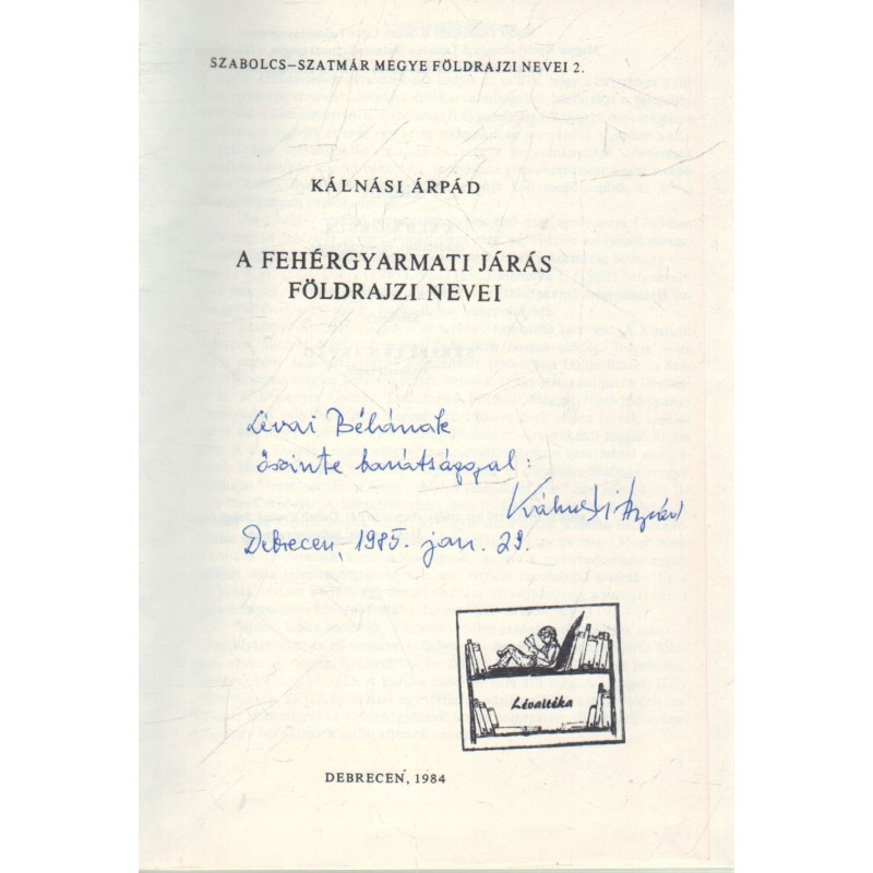 A fehérgyarmati járás földrajzi nevei (dedikált)