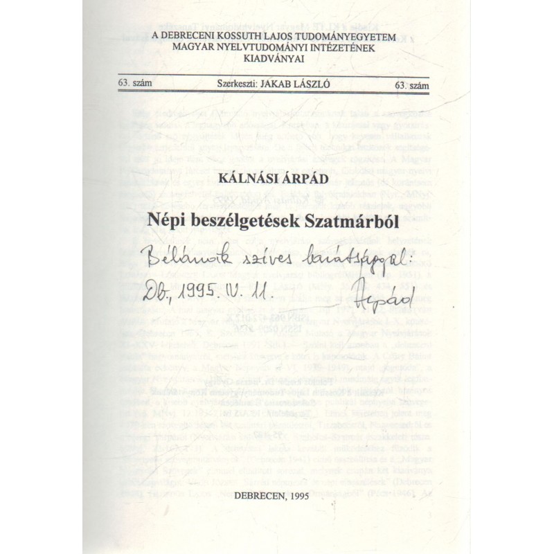 Népi beszélgetések szatmárból (Dedikált)