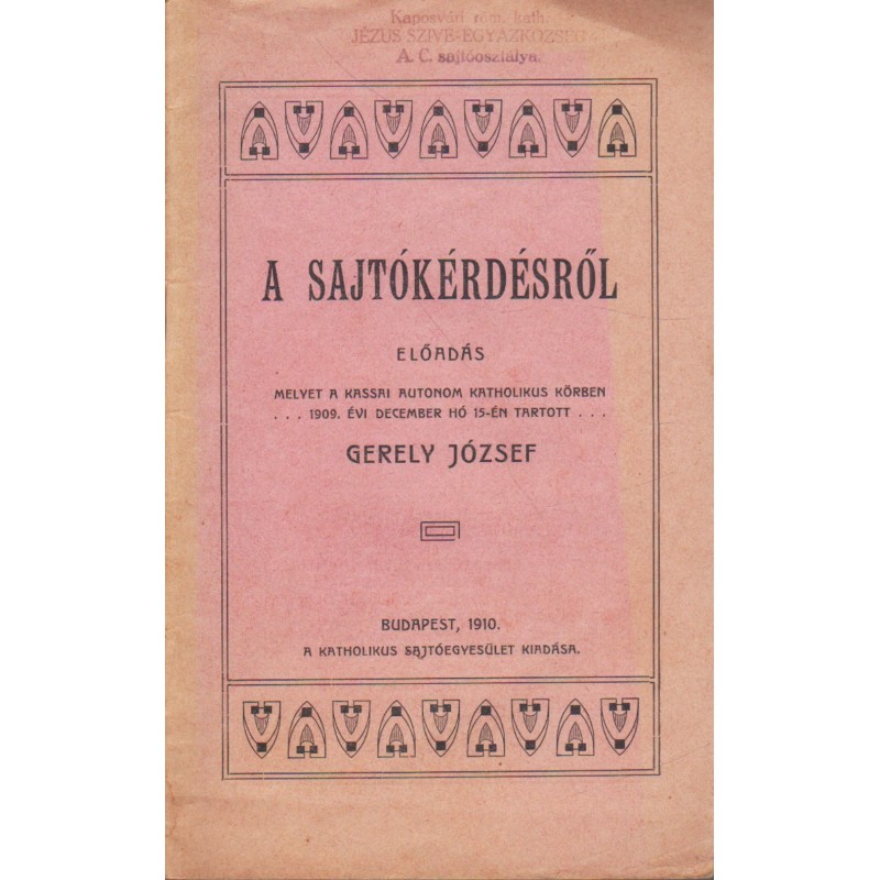 | Nyomda | Szent Erzsébet Nyomda R. T. |