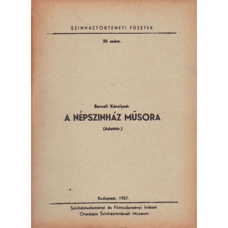 | Kiadó(k) | Színháztudományi és Filmtudományi Intézet, Országos Színháztörténeti Múzeum |