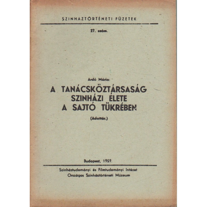 | Kiadó(k) | Színháztudományi és Filmtudományi Intézet, Országos Színháztörténeti Múzeum |