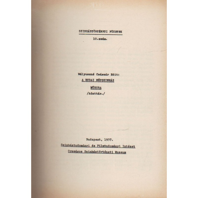 | Kiadó(k) | Színháztudományi és Filmtudományi Intézet, Országos Színháztörténeti Múzeum |