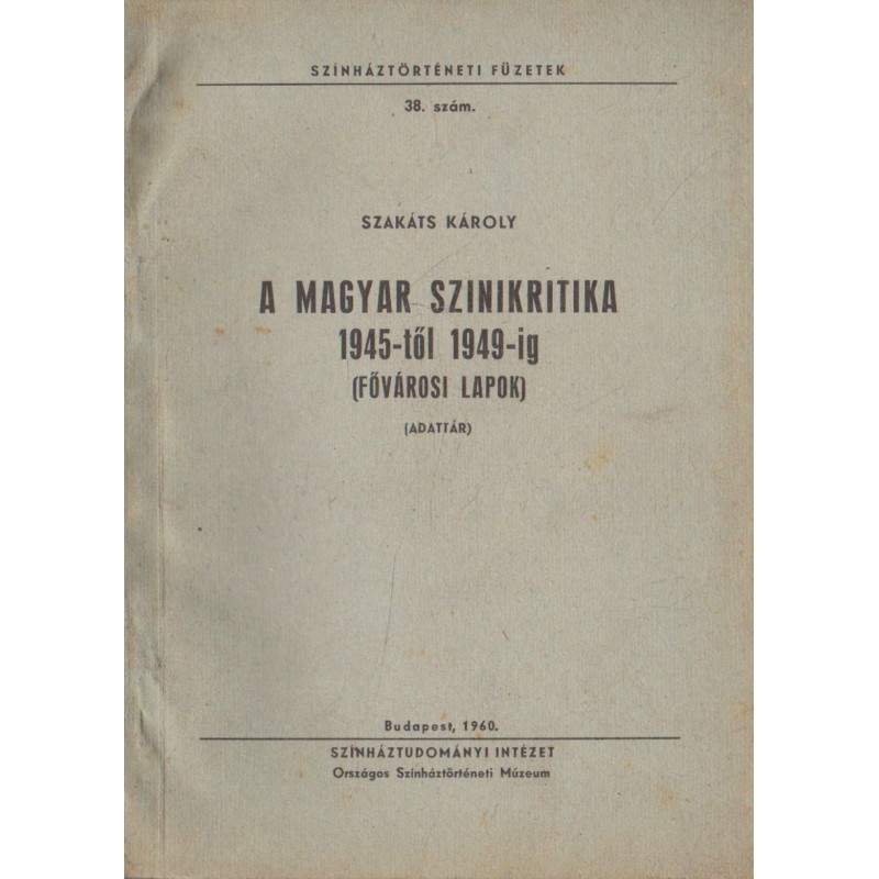 | Kiadó(k) | Országos Színháztörténeti Múzeum, Színháztudományi Intézet |