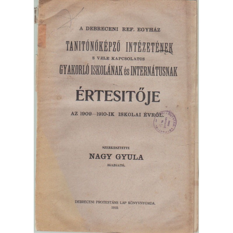 A Debreceni Ref. Egyház Tanítóképző Intézetének s vele kapcsolatos Gyakorló Iskolának és Internátusnak Értesítője 1909-1910