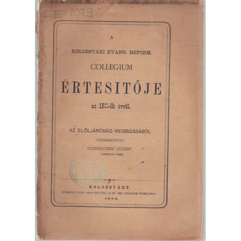 Kolozsvári Evang. Reform. Collegium értesítője 1881-1882