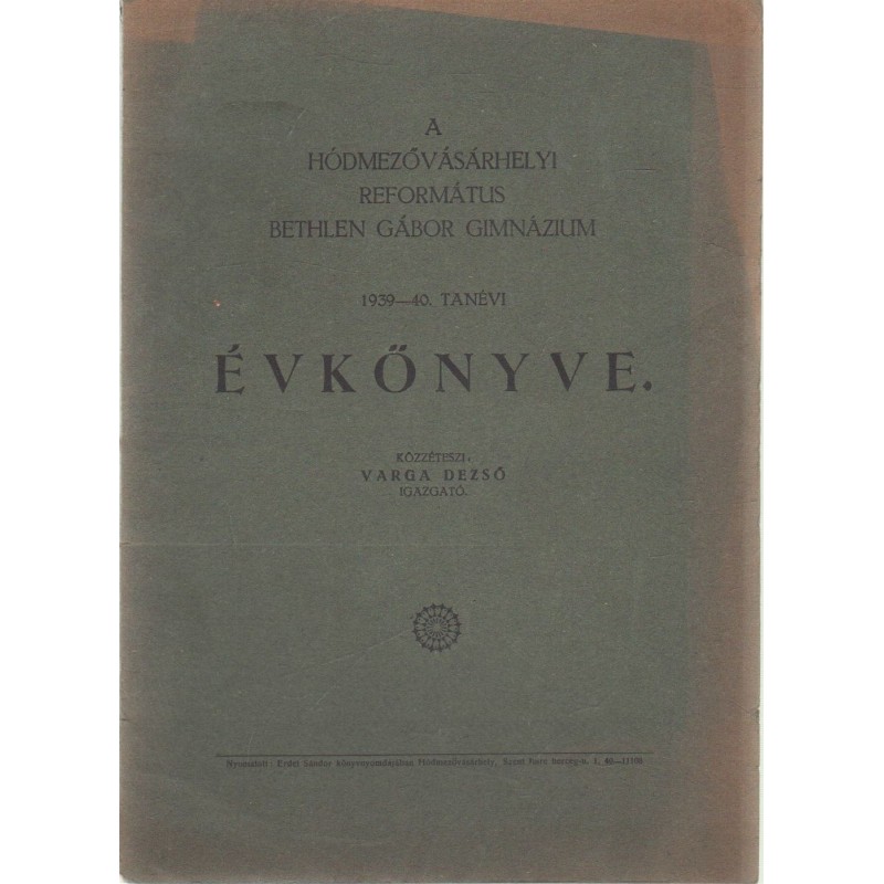 Hódmezővásárhelyi Református Bethlen Gábor Gimnázium évkönyve 1939-1940