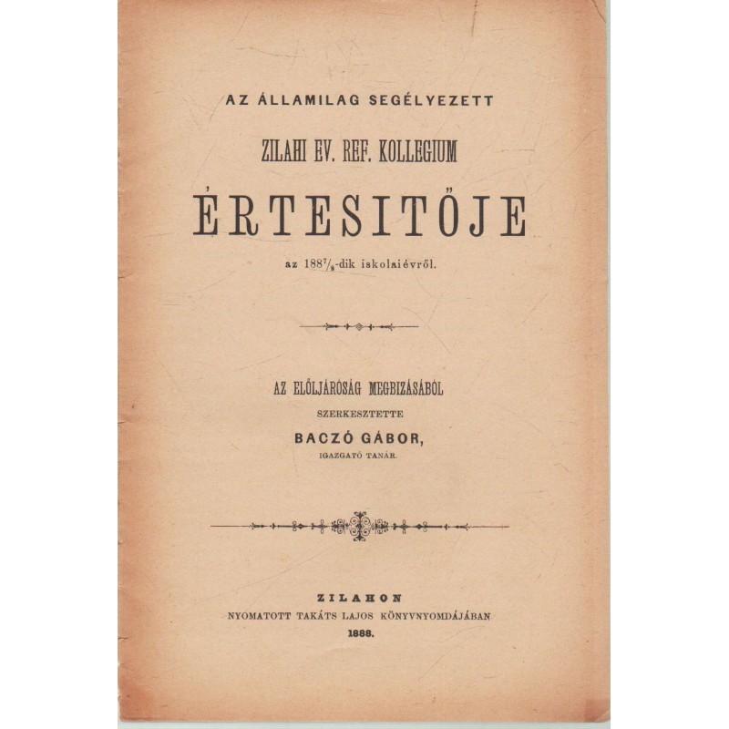 Zilahi Ev. Ref. kollegium értesítője 1887-1888