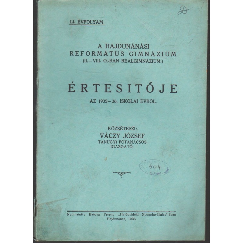 Hajdúnánási Református Gimnázium értesítője 1935-1936