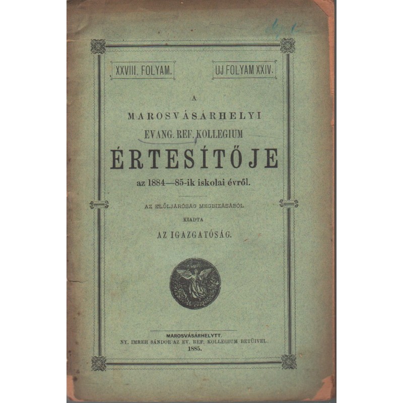 Marosvásárhelyi Ev.Református Kollegium értesítője 1884-1885