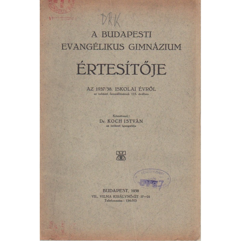 Budapesti Evangélikus Gimnázium értesítője 1937-1938