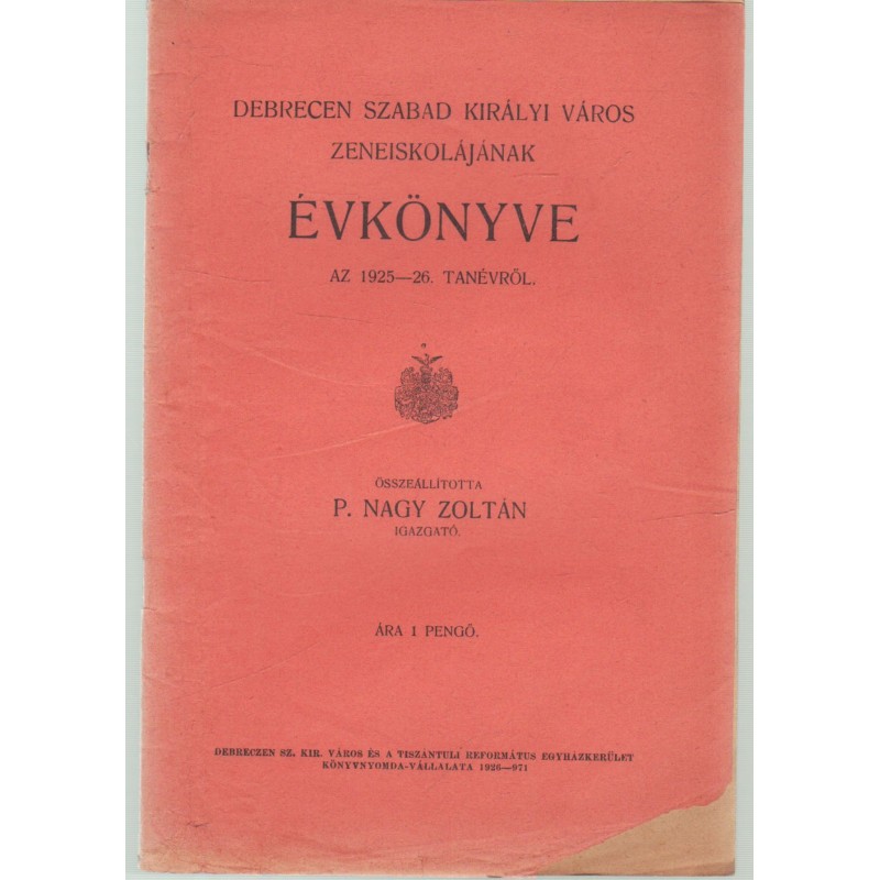Debrecen szabad királyi város zeneiskolájának évkönyve 1925-26. tanév
