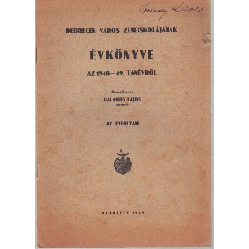 Debrecen város Zeneiskolájának évkönyve 1948-49. tanévről