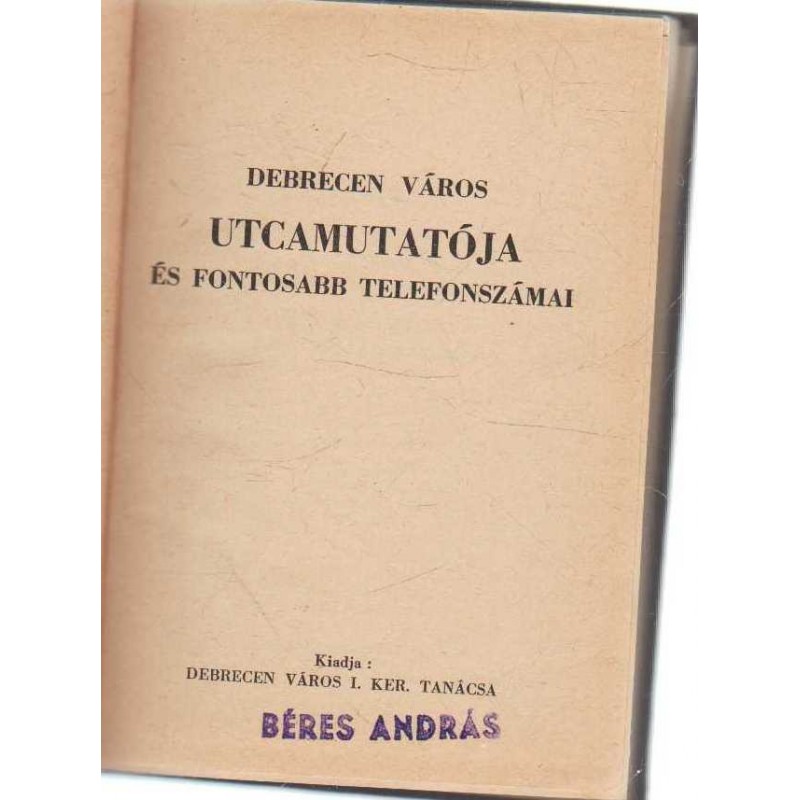 | Kiadó(k) | Debrecen Város I. ker. Tanácsa |