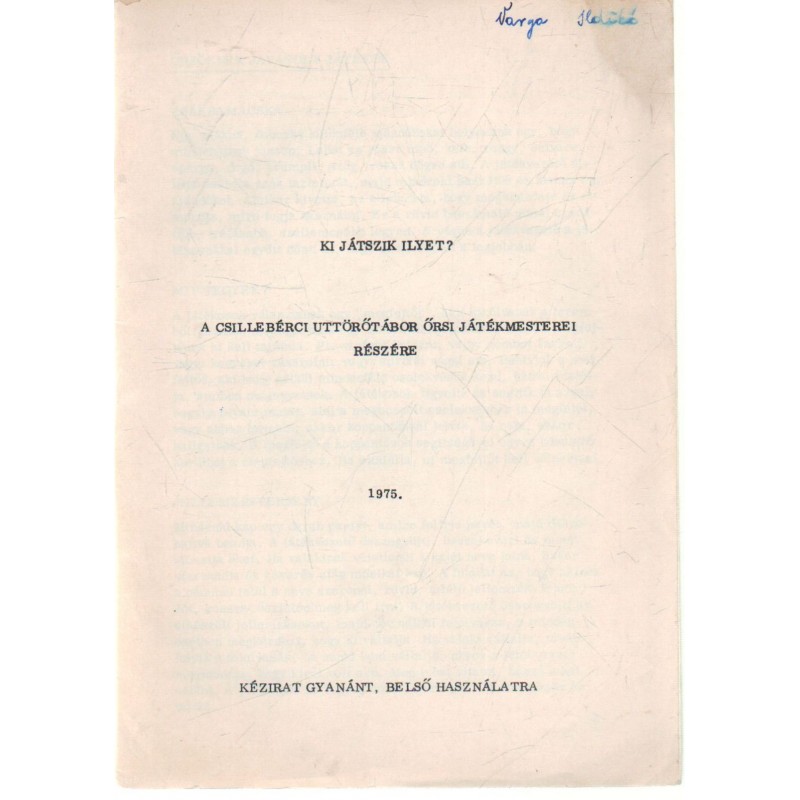 Ki játszik ilyet? A csillebérci uttörőtábor..részére
