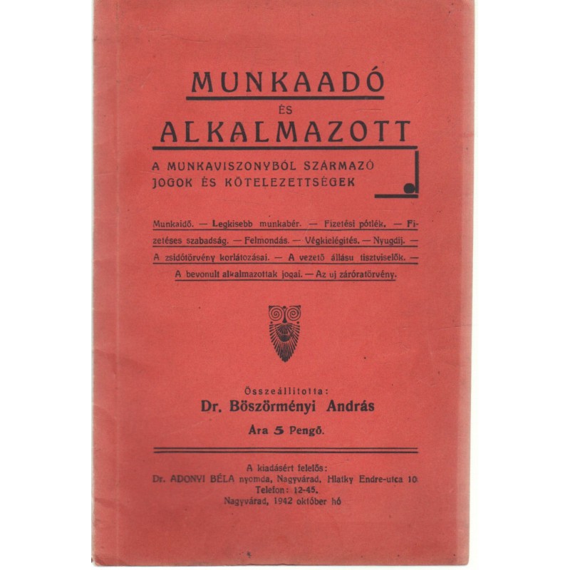 | Nyomda | Dr.Adonyi Béla nyomda |