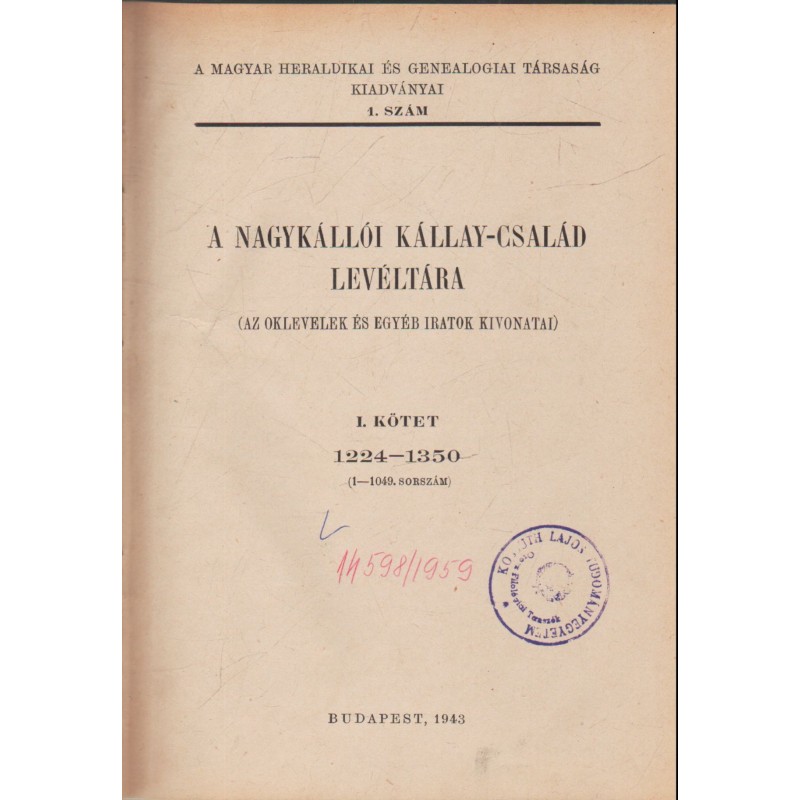 A nagykállói Kállay-család levéltára I-II. kötet