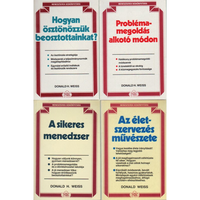 | Alcím | Hogyan ösztönözzük beosztottainkat? - Problémamegoldás alkotó módon - Az életszervezés művészete - A sikeres menedzser |