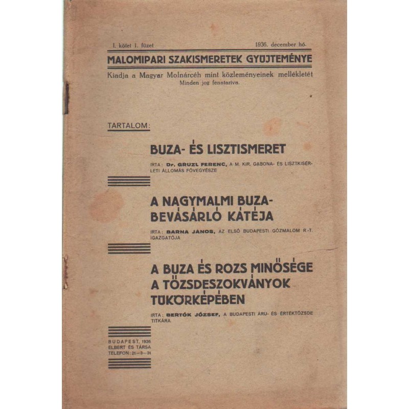 | Sorozatcím | Malomipari Szakismeretek Gyüjteménye |