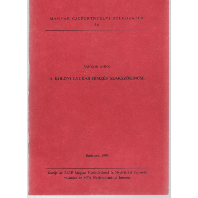 | Kiadó(k) | ELTE Magyar Nyelvtörténeti és Nyelvjárási Tanszék, MTA Nyeltudományi Intézet |
