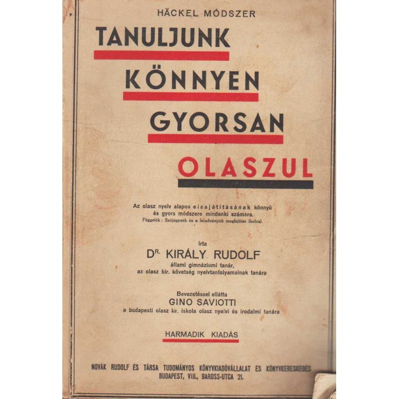 | Kiadó(k) | Novák Rudolf és Társa Tudományos Könyvkiadóvállalat és Könyvkereskedés |