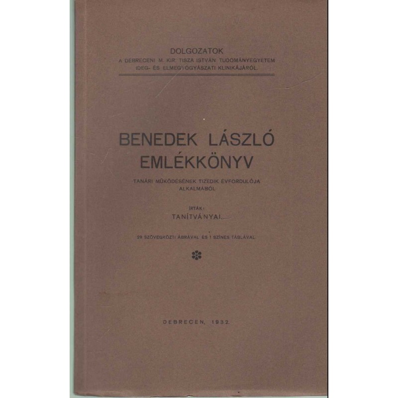 | Sorozatcím | Dolgozatok a Debreceni M. Kir. Tisza István Tudományegyetem Ideg- és Elmegyógyászati klinikájáról |