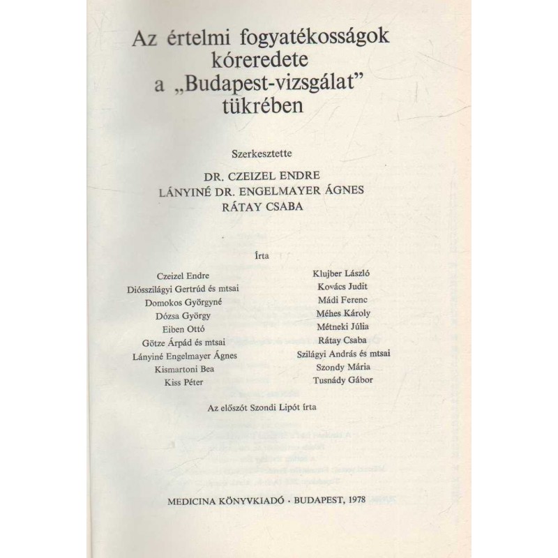 | Író(k) | Dr. Czeizel Endre (szerk.), Lányin é Dr. Engelmayer Ágnes (szerk.), Rátay Csaba (szerk.) |