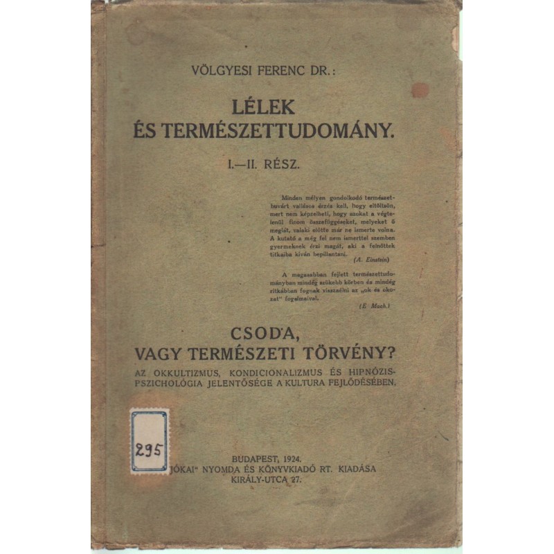 | Alcím | Csoda, vagy természeti törvény? (Az okkultizmus, kondicionalizmus és hipnózis-pszichológia jelentősége a kultúra fejlődésében) |