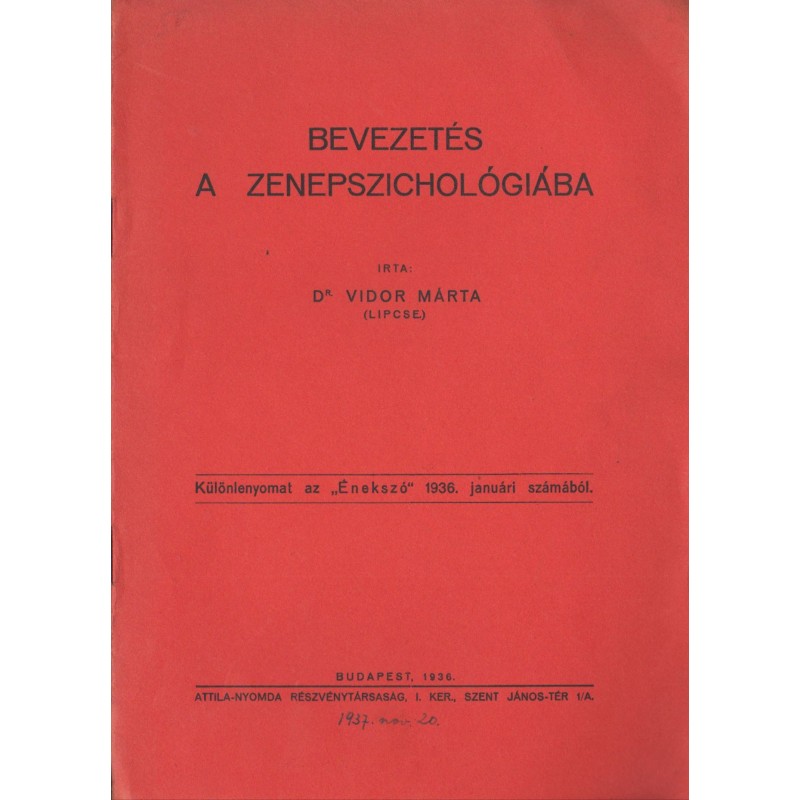 Különlenyomat az "Énekszó" 1936. januári számából.Címzett :