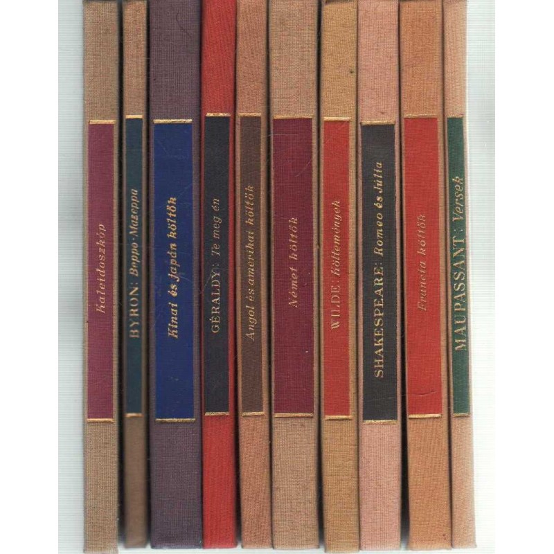 Címek: Versek - Francia költők - Romeo és Júlia - Költemények - Német költők - Angol és amerikai költők - Te meg én - Kínai és japán költők - Beppo/Mazeppa - Kaleidoszkóp.Címzett :
