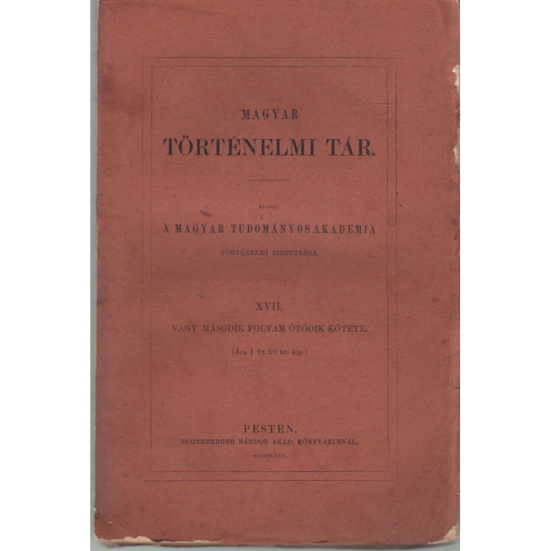 | Sorozatcím | Magyar Történelmi Tár |