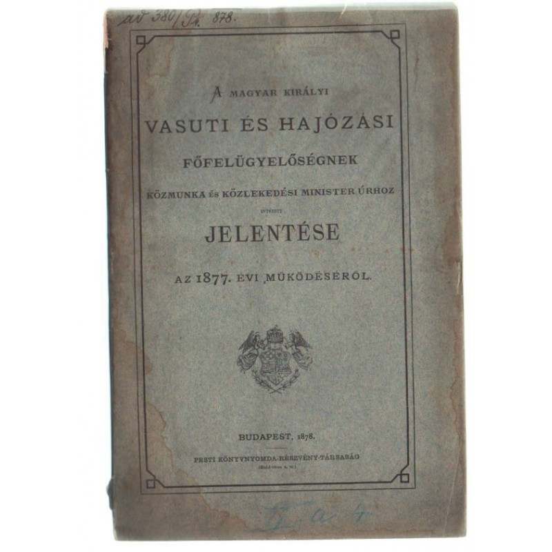 Foltos példány! Könyvtári példány volt! 3 melléklettel! ( A Magyar Királyi Vasuti és Hajózási Főfelügyelőségnek Közmunka és Közlekedési Minister úrhoz intézett jelentése az 1877. évi működéséről )