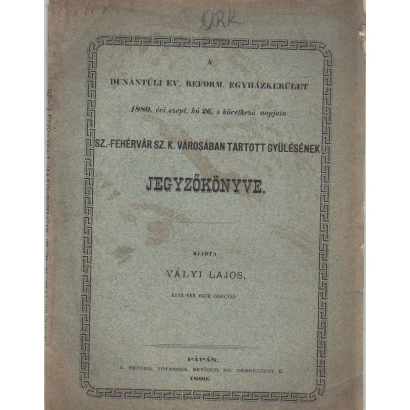 Dunántúli Ev. Reform. Egyházkerület Székesfehérváron tartott gyűlésének jegyzőkönyve 1880