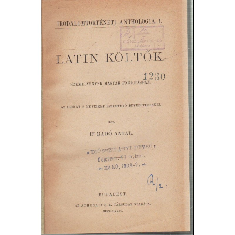 | Sorozatcím | Irodalomtörténeti Anthologia I. |