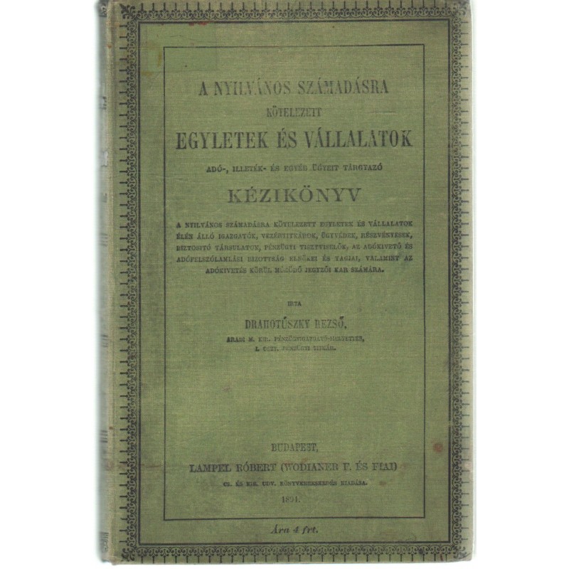 A nyilvános számadásra kötelezett egyletek és vállalatok adó-, illeték- és egyéb ügyeit tárgyazó kézikönyv