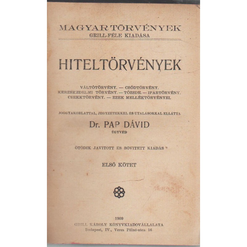 | Kiadó(k) | Grill Károly Könyvkiadóvállalata |