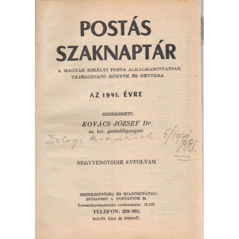 Postás szaknaptár 1941