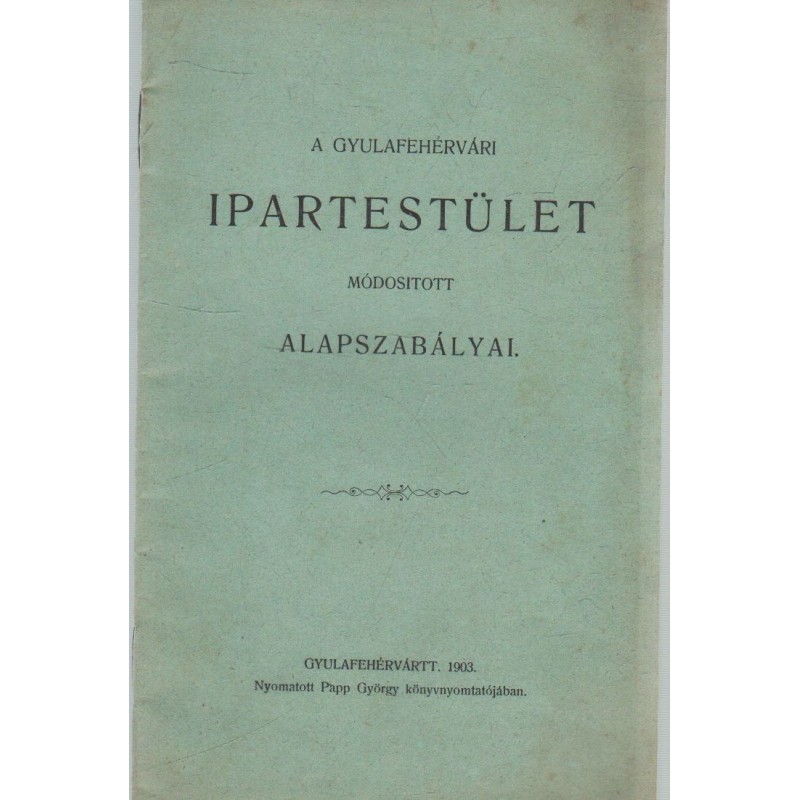 A gyulafehérvári ipartestület módosított alapszabályai
