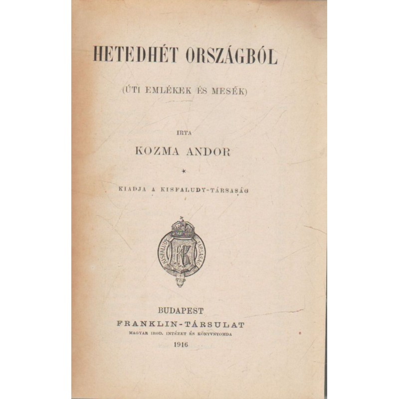 | Kiadó(k) | Kisfaludy Társaság |