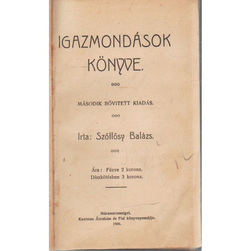 | Nyomda | Kaufman Ábrahám és Fiai könyvnyomdája |