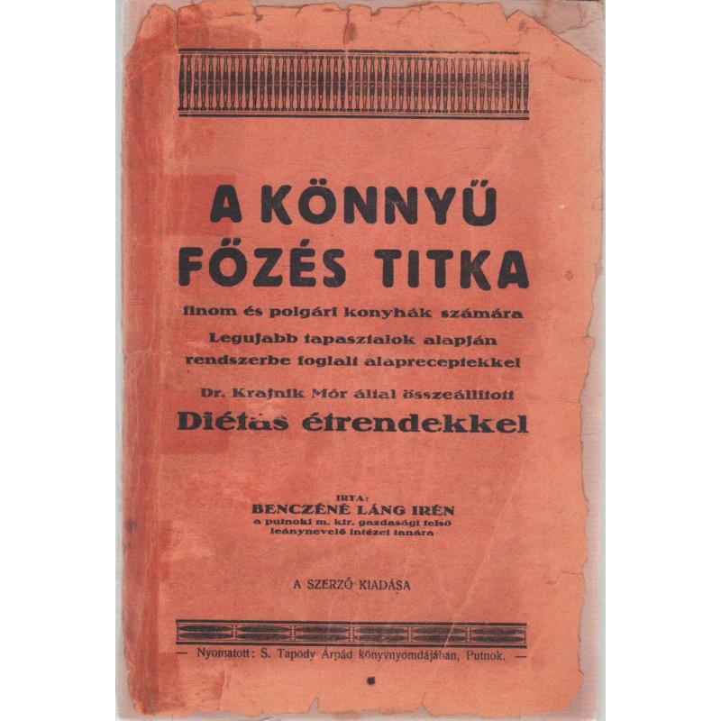 A könnyű főzés titka (putnoki szakácskönyv) 1934